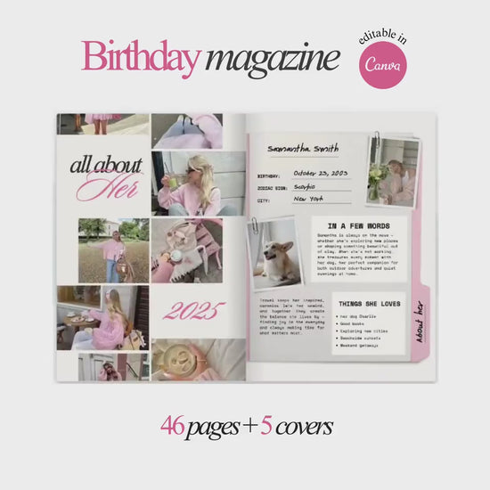 Personalized Digital Birthday Magazine Template for Her - Editable Canva Template
